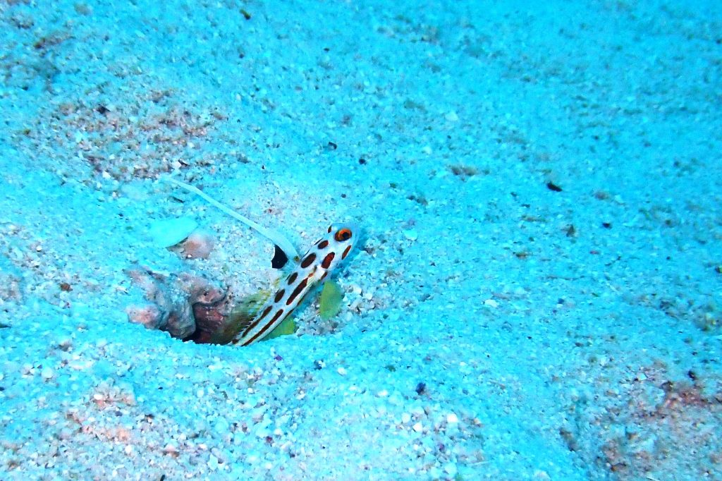 ヤシャハゼとネジリンボウ 近くに行くときはゆ~くり寄ってくださいね!引っ込ますとあちらこちらから