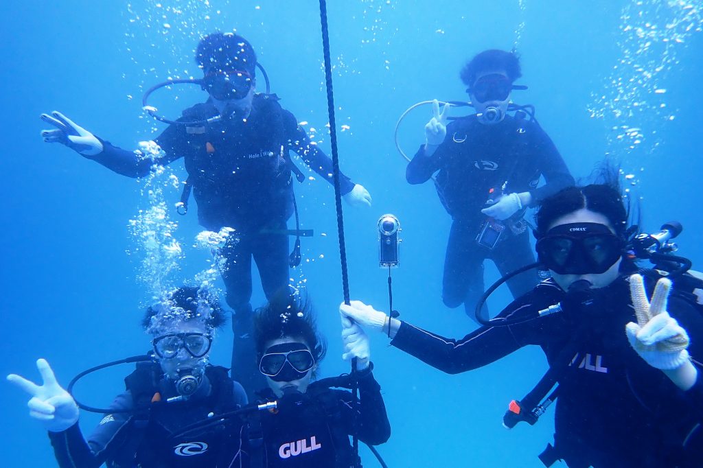 那覇に向かう台風の影響で海は大時化!しかし水中までのうねりはなく十分に遊べました!