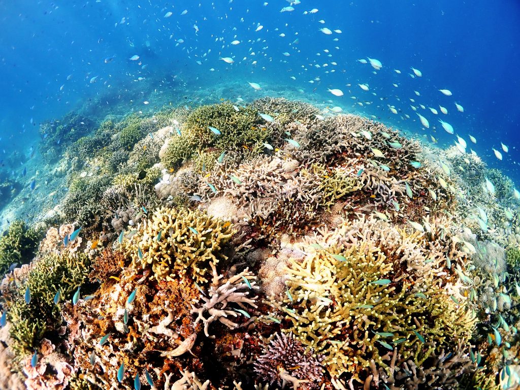 サンゴもこんなに元気です!デバスズメダイの数は半端ない!あまりの綺麗さにうっとり