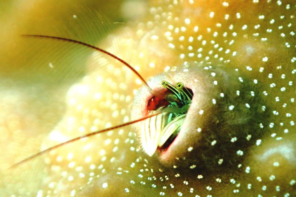 あごの色具合がいい感じのエリグロギンポさんに、威嚇ポーズのコマチコシオリエビさん。