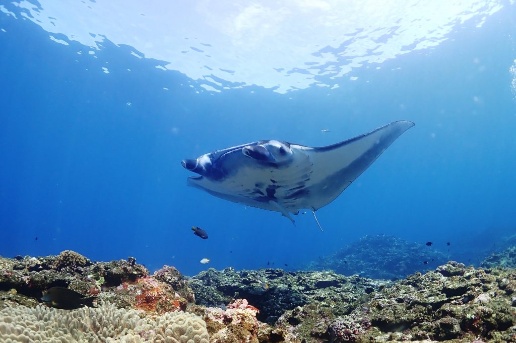 透明度抜群~!船の下にはマンタが続々と登場~!