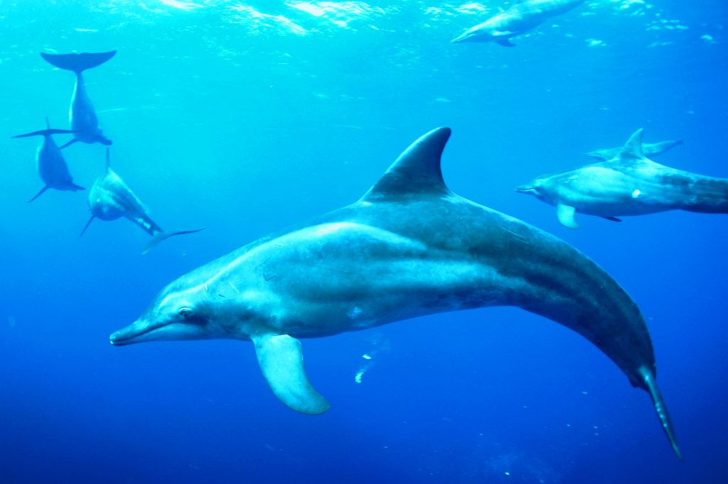 今日は太陽がサンサンな感じで。日向ぼっこかな?沢山のイルカが