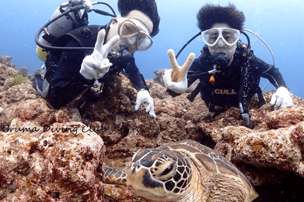 2人とも上手に潜れました。カメとも共演できてよかったです。