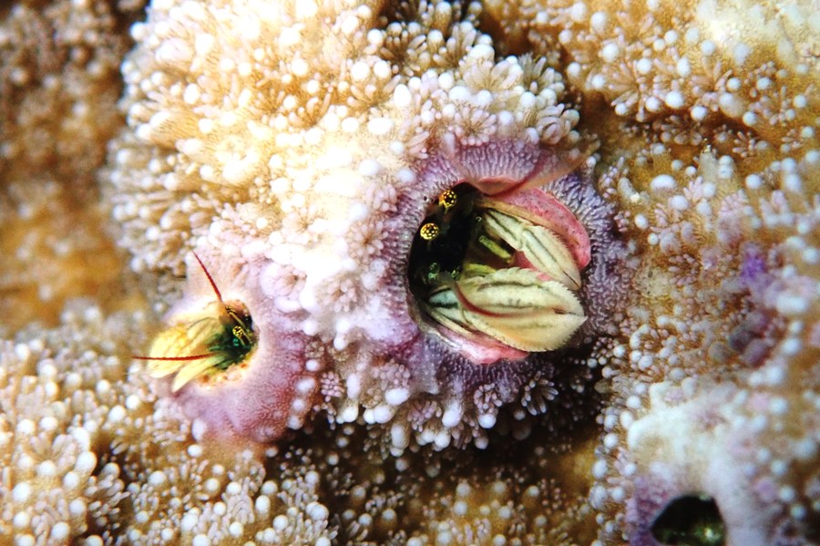 可愛く仲良く並んでお住いのカンザシヤドカニさん!