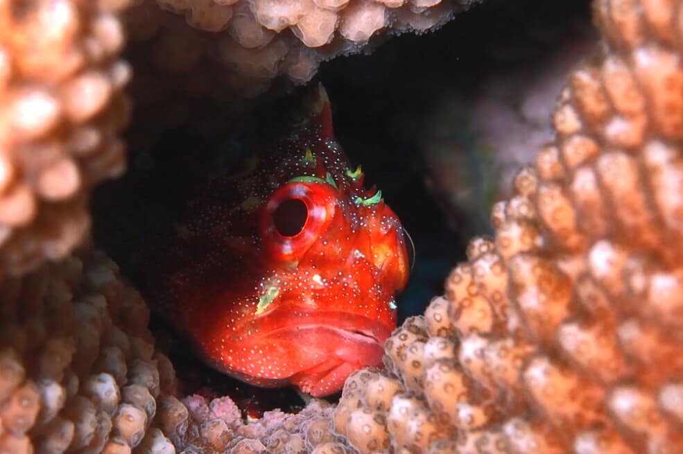 ハナヤサイサンゴがお家のカスリフサカサゴ。模様も可愛いカサゴです。