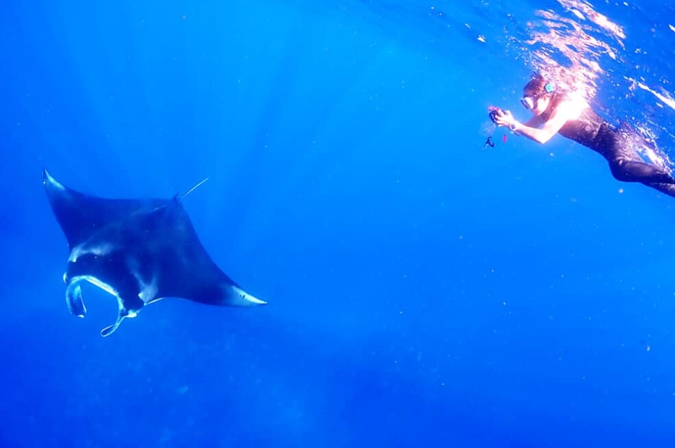 水中で見た後は、スノーケルでも行ってきました!Mちゃん!ひたすらマンタを追って撮影です!