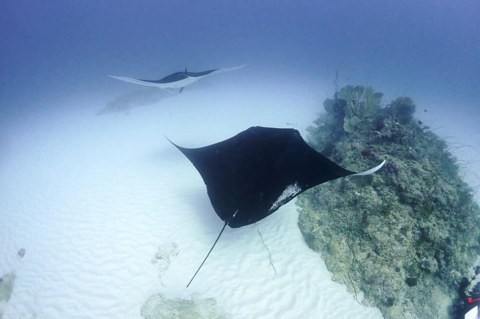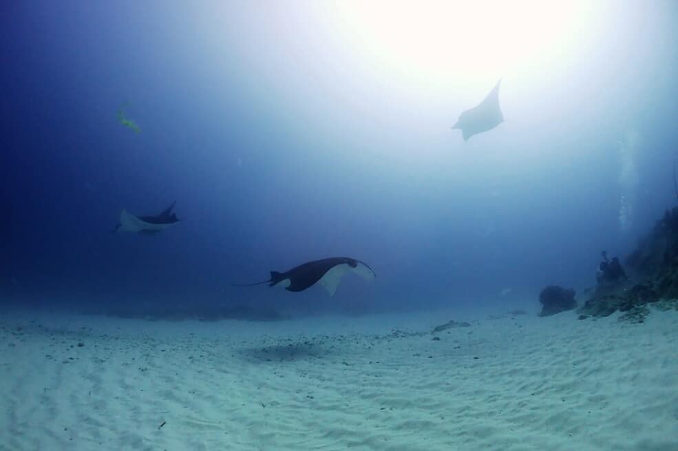 水中の明るさ良し!流れ緩やか~!透明度もまずまず~!3枚のマンタが二人の周りで優雅に舞っておりました!