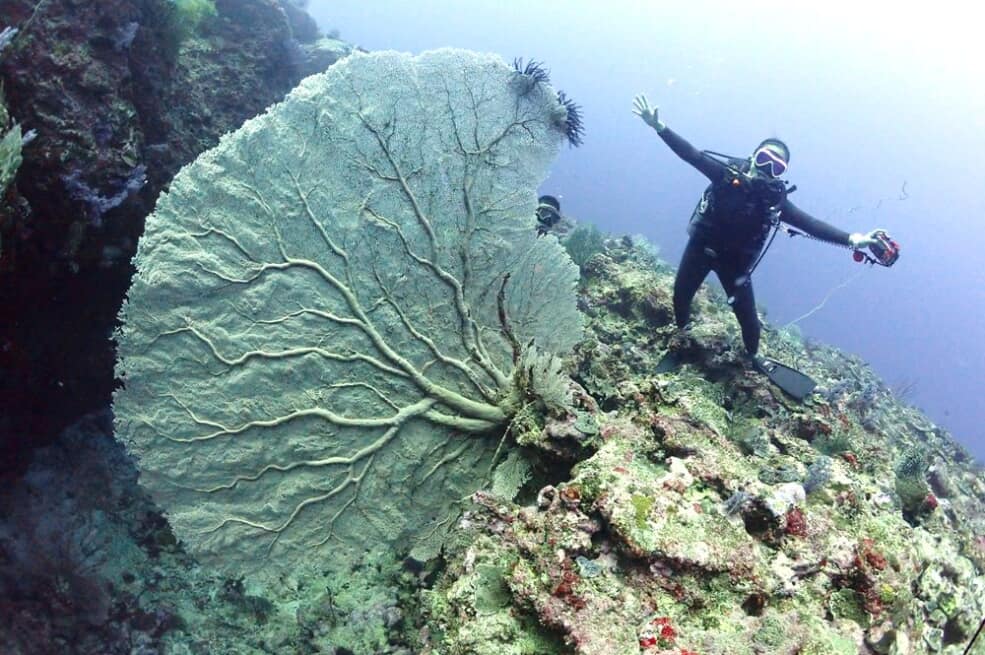 大きなウミウチワと記念撮影!こうして見てみると、改めてウミウチワの大きさがわかりますね!