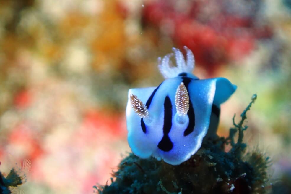 ブルーの色が淡くて綺麗なミゾレウミウシさん。