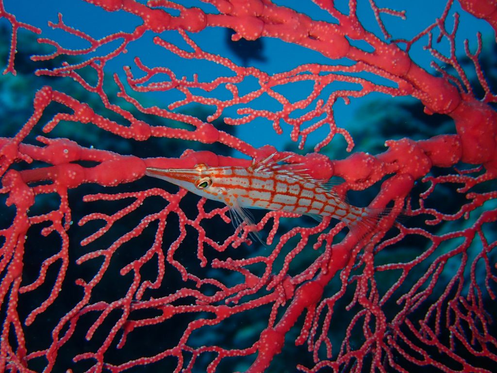 赤いイソバナには、今日もクダゴンベさんがしっかり見れました!とんがった口がキュートなゴンベさん!
