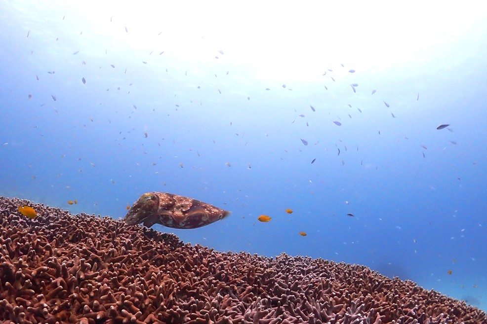 冬は寒さに耐えながらもこのコブシメを楽しみに潜りに来られるダイバーも多いですよ!