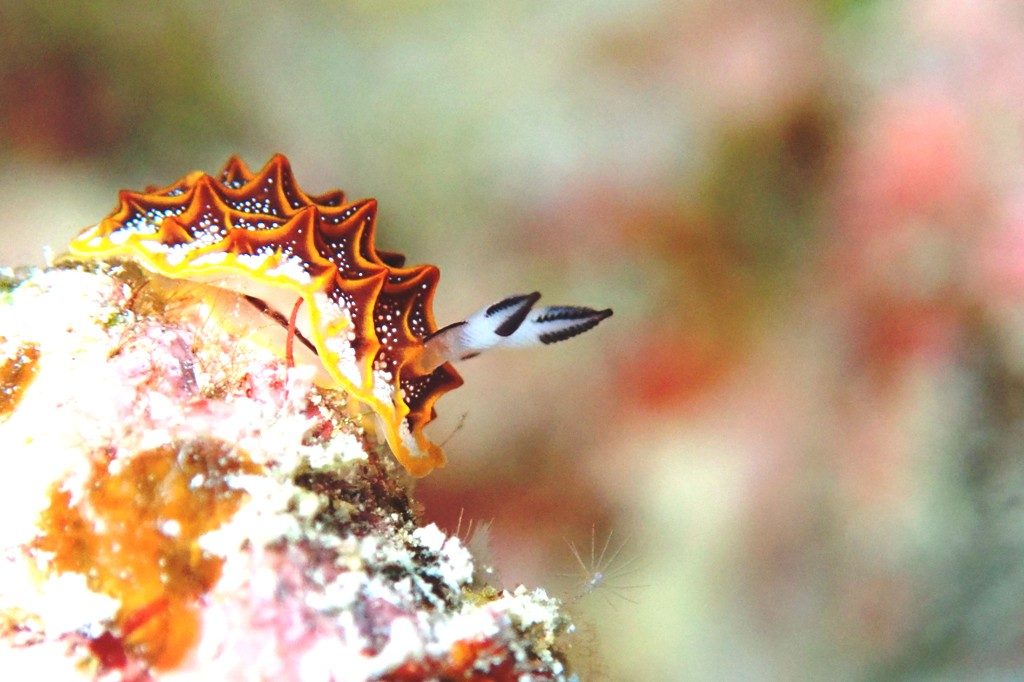 ミニサイズのモザイクウミウシさん!この季節は、ウミウシ探しも楽しみです。いろいろなウミウシが見られます。