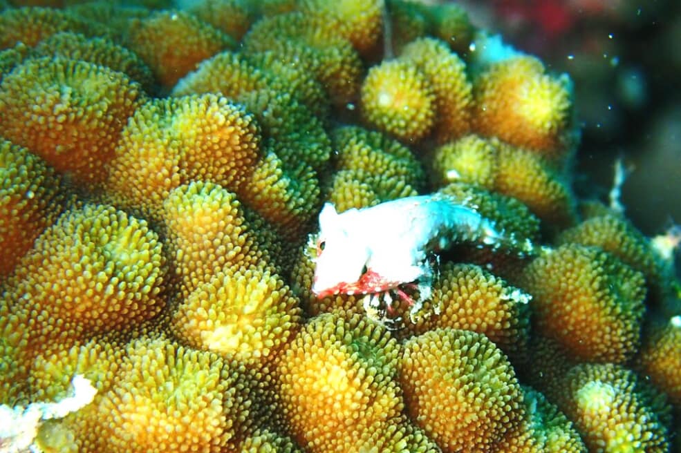 まだまだ数は少ないですが、器用にお口をサンゴの中に入れて、卵を産み付けていましたよ。