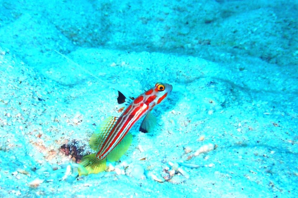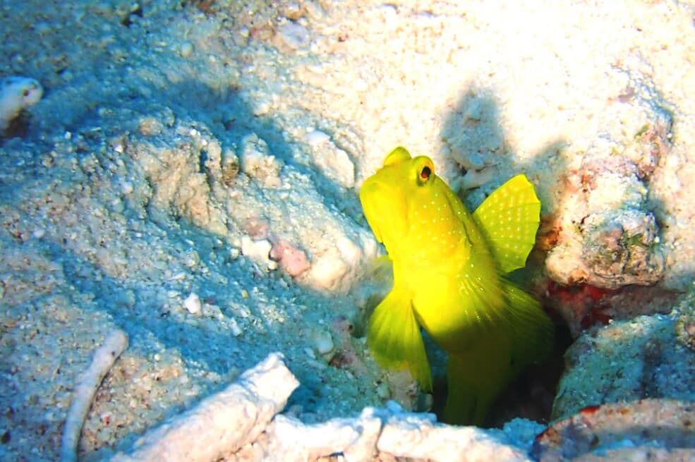 砂地ダイビングでは、黄色の鮮やかな色が美しいギンガハゼさん!