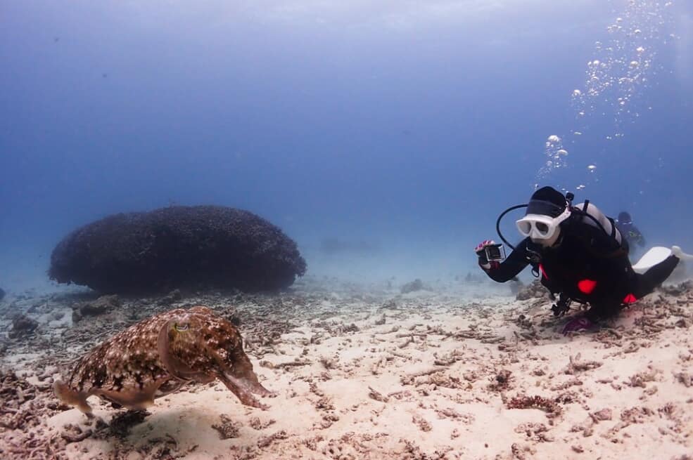 気温に比べ水中の方が温かい水中へ~!本日も張り切って海へ!