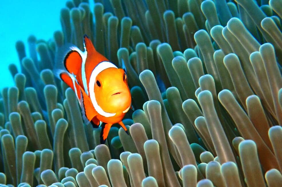 大・中・小とサイズが揃っていた隠れ上手なカクレクマノミさん。中サイズのこの子をモデルにしてみました。