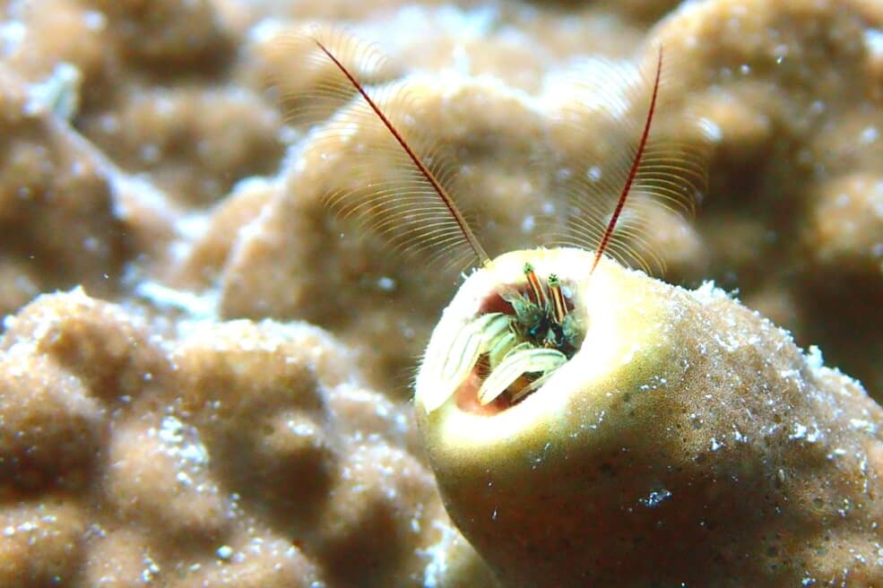 どこを見てるのでしょう?カンザシヤドカニさん。