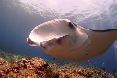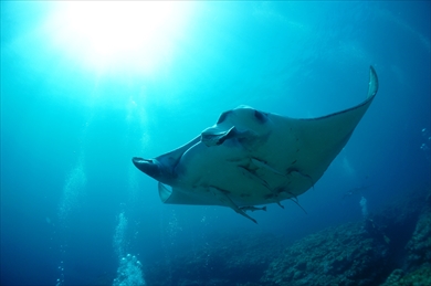 年間を通し出会える世界有数の高確率ポイント、9月頃にはピークを迎え、10枚以上のマンタが集結。アンカリングで潜る事ができ、水深も10M前後で見れる為、初心者ダイバー~上級ダイバーまで、魅了されるまさにビックポイント!