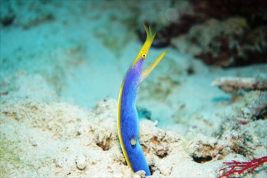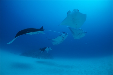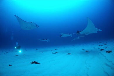 年間を通して大潮の時のみ潜れるポイント。真っ白な砂地を流れに逆らい優雅にホバーリングするマンタ。多い時には、十数枚のマンタが連なり感動の光景が目の前に・・・・砂地に映えるマンタ。又、至近距離での観察もできる。ポイント名いわく流れが強く、又水深も深い為、アドバンス以上である程度のスキルを身につけておく必要があります。ドリフトダイビングでのご案内になります。