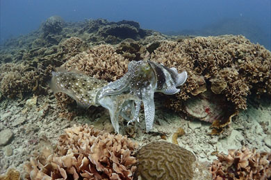 3月~5月の初旬は、コブシメシーズン真っ只中です。コブシメの1匹のメスを奪い合う威嚇シーンを真近でゆっくりと観察することが出来ます。多い時で、20匹前後にコブシメが集結する場面に遭遇できるかも??