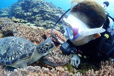 2016年10月にうるまダイビングクラブが新たに発見したNEWマンタポイント!まだまだ開拓段階ですが、捕食シーンからクリーニングするマンタまで、多い時には、10枚前後のマンタが連帯を組んでいることも。マンタ目的のダイバーには、一度潜ってほしいNEWポイントです。うねりや流れが発生しやすい為、ドリフトダイビングでマンタを探るのがベスト!水深は比較的浅めなので、初心者ダイバーからでもご案内出来ます。