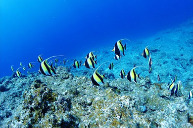 11月~2月は、気温や水温は徐々に下がりますが、竹富島では、イソマグロもお目見えの季節です。透明度も夏に比べ上がってきます。カラフルなウミウシも徐々に増えてきますよ。北風の季節になるこの時期はは、ダイナミックな地形がダイバーに人気の黒島は!又、水面で捕食をするマンタに出会えるのもこの季節です。地形や水面マンタ、又カメも多く見られる魅力満載の海です。